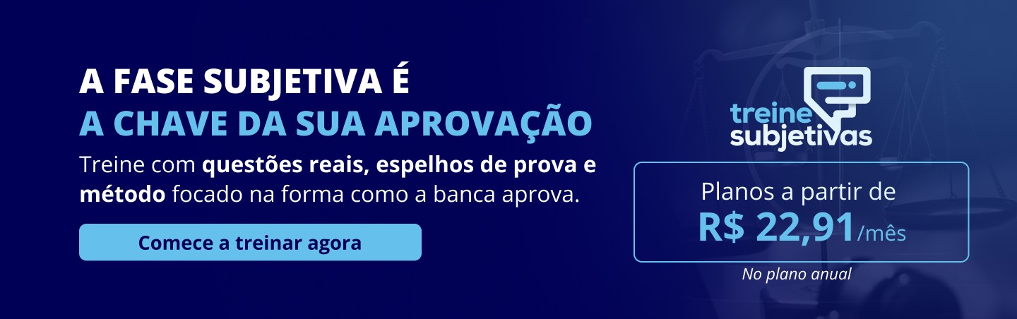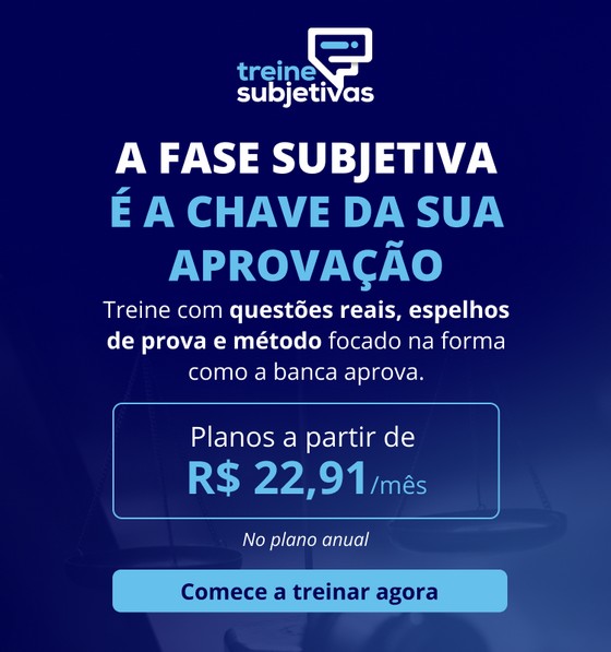 Assine agoraPara obter a aprovação na OAB e/ou no concurso dos seus sonhos é preciso obter êxito na fase subjetiva. E esse êxito depende de uma preparação que exige o conhecimento das provas anteriores da Banca e da carreira!